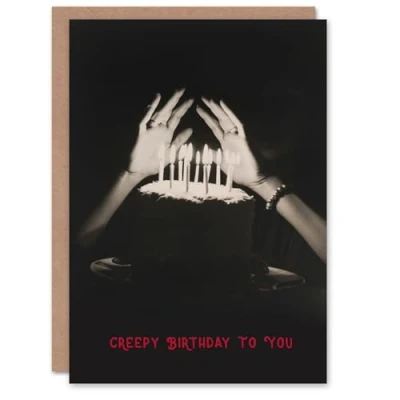 Artery8 Birthday Card Creepy Cake Many Candles Warming Hands For Her Gran Sister Niece Daughter Wife Woman Greeting