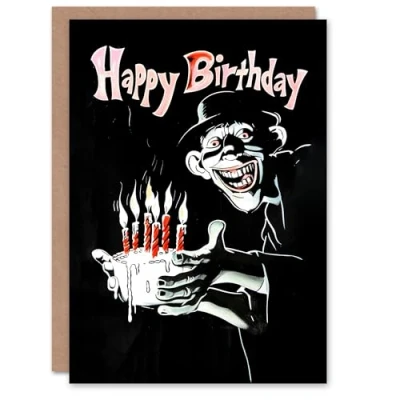 Artery8 Birthday Card Creepy Man with Cake Candles Weird Drawing For Him Male Dad Brother Son Papa Grandad Greeting