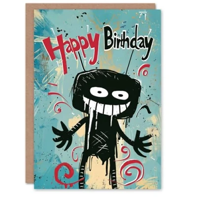 Artery8 Birthday Card Creepy Stick Man Drawing Weird Messy For Him Male Dad Brother Son Papa Grandad Greeting