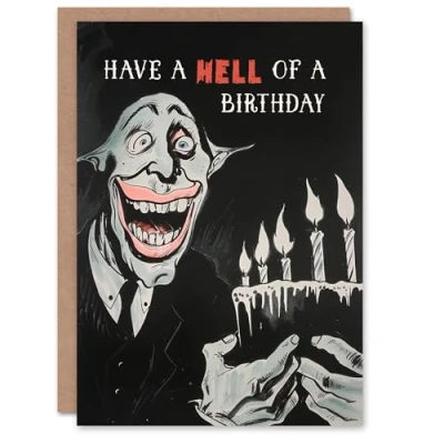 Artery8 Birthday Card Creepy Weird Man with Cake Candles Scary For Him Male Dad Brother Son Papa Grandad Greeting