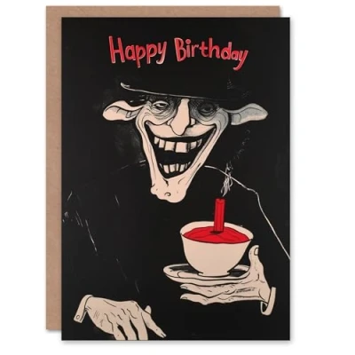 Artery8 Birthday Card Creepy Witch with Tea Candle Spooky Drawing For Him Man Male Dad Brother Son Papa Grandad Greeting