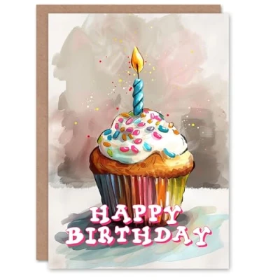 Artery8 Birthday Card Cupcake Colourful Sprinkles Candle Watercolour For Her Gran Sister Niece Daughter Wife Woman Greeting