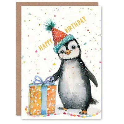 Artery8 Birthday Card Cute Baby Penguin Party Hat Confetti For Son Daughter Girl Boy Kids Happy