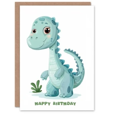 Artery8 Birthday Card Cute Blue Baby Dinosaur Cartoon Kids Child For Son Daughter Girl Boy Happy