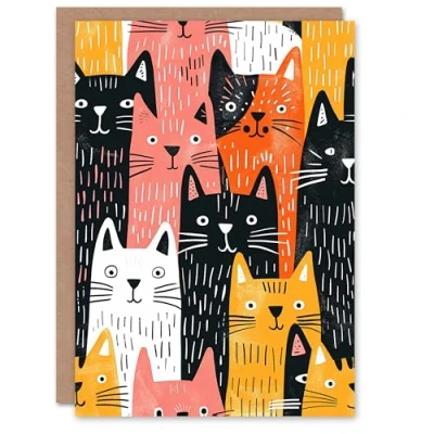 Artery8 Birthday Card Cute Cat Face Pattern Design Blank Arty Art All Occasion Greeting