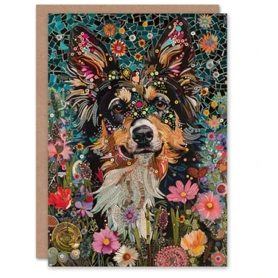 Artery8 Birthday Card Cute Collie Dog Lover Floral Portrait Mosaic For Her Gran Sister Niece Daughter Wife Woman Greeting