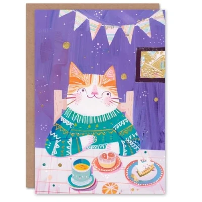 Artery8 Birthday Card Cute Ginger Tabby Cat Lover Cake Party For Child Kids Son Daughter Greeting
