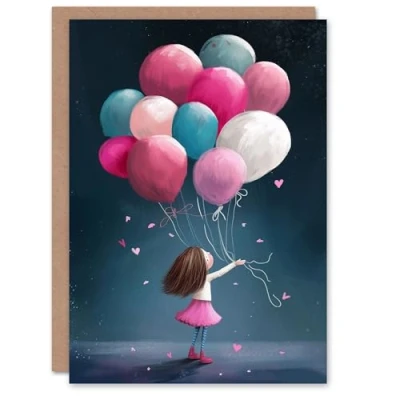 Artery8 Birthday Card Cute Little Girl Balloons Night Sky For Her Gran Sister Niece Daughter Wife Woman Greeting