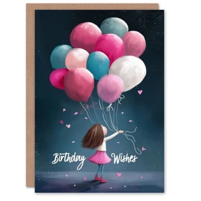 Artery8 Birthday Card Cute Little Girl Balloons Night Sky Wishes For Her Gran Sister Niece Daughter Wife Woman Greeting
