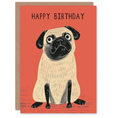 Artery8 Birthday Card Cute Pug Dog Lover Quirky Animal Pet Portrait Blank Arty Art All Occasion Greeting