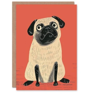 Artery8 Birthday Card Cute Pug Dog Lover Red Quirky Animal Pet Blank Arty Art All Occasion Greeting