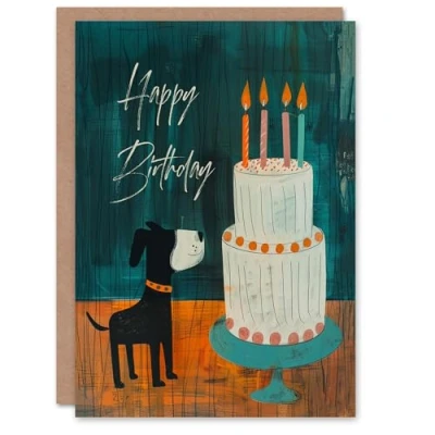 Artery8 Birthday Card Cute Puppy Dog Pet Kids Cake Candles For Son Daughter Girl Boy Happy