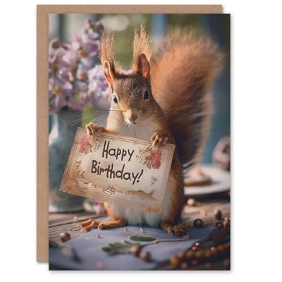 Artery8 Birthday Card Cute Red Squirrel on Table Holding Sign For Her Gran Sister Niece Daughter Wife Woman Greeting