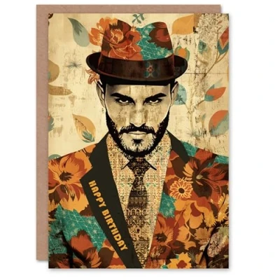 Artery8 Birthday Card Dapper Man Floral Pattern Suit Hat For Him Male Dad Brother Son Papa Grandad Greeting