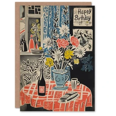 Artery8 Birthday Card Drinks Celebration Floral Tea Room Painting For Her Gran Sister Niece Daughter Wife Woman Greeting
