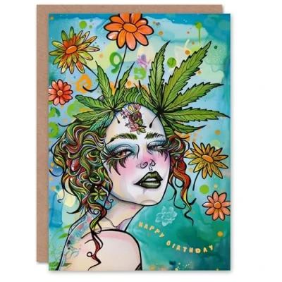Artery8 Birthday Card Fairy Rave Hippie Floral Portrait For Her Gran Sister Niece Daughter Wife Woman Greeting