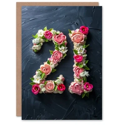 Artery8 Birthday Card Fancy Floral Number Cake 21 Twenty One For Her Woman Sister Niece Daughter Granddaughter Greeting