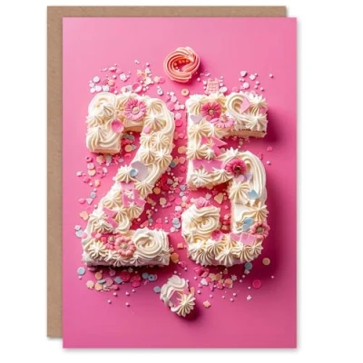 Artery8 Birthday Card Fancy Floral Number Cake Pink 25 Twenty Five For Her Woman Sister Niece Daughter Granddaughter Greeting