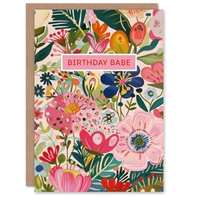 Artery8 Birthday Card Floral Babe Colourful Watercolour Flower Pattern For Her Gran Sister Niece Daughter Wife Woman Greeting