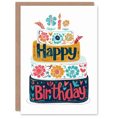 Artery8 Birthday Card Floral Cake Candles and Flowers For Her Gran Sister Niece Daughter Wife Woman Greeting
