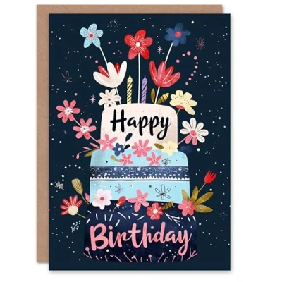 Artery8 Birthday Card Floral Cake Flowers and Candles For Her Gran Sister Niece Daughter Wife Woman Greeting
