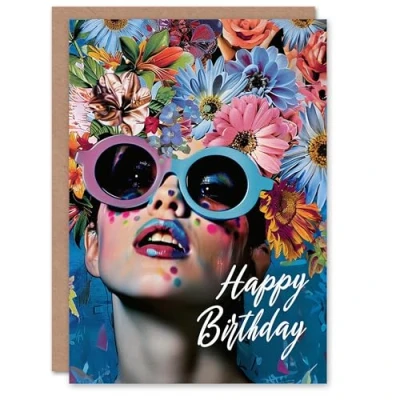Artery8 Birthday Card Floral Headdress Portrait with Sunglasses For Her Gran Sister Niece Daughter Wife Woman Greeting