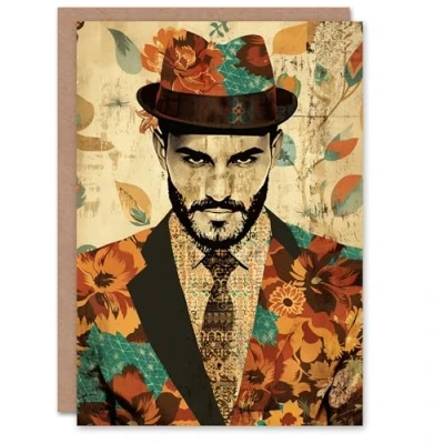 Artery8 Birthday Card Floral Pattern Suit Hat Dapper Man For Him Male Dad Brother Son Papa Grandad Greeting