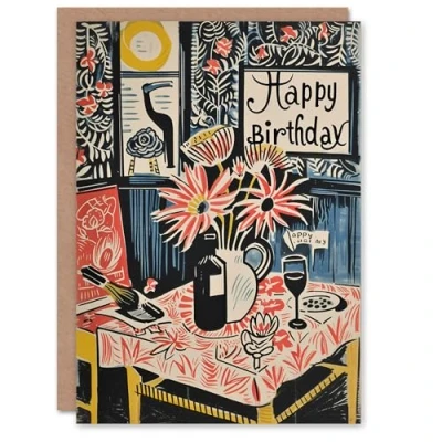 Artery8 Birthday Card Floral Tea Room Drinks Celebration Painting For Her Gran Sister Niece Daughter Wife Woman Greeting