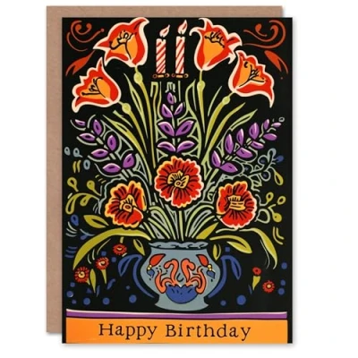 Artery8 Birthday Card Flower Bouquet in Vase Folk Art For Her Gran Sister Niece Daughter Wife Woman Greeting