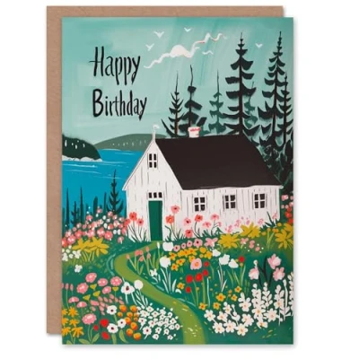 Artery8 Birthday Card Flower Meadow Cottage Lake Landscape For Her Gran Sister Niece Daughter Wife Woman Greeting