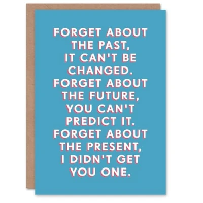 Artery8 Birthday Card Forget Past Future No Present For Him Man Male Dad Brother Son Papa Grandad Greeting Fun Funny Humour Joke