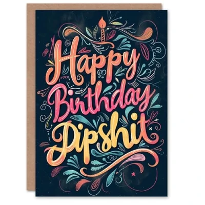 Artery8 Birthday Card Funny Rude Joke Colourful Graffiti Dipsh*t For Him Man Male Dad Brother Son Papa Grandad Greeting