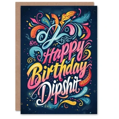 Artery8 Birthday Card Funny Rude Joke Dipsh*t Colourful Graffiti Bro For Him Man Male Brother Greeting