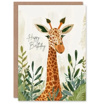 Artery8 Birthday Card Giraffe Head Safari Jungle Design For Child Kids Son Daughter Greeting