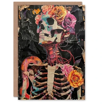 Artery8 Birthday Card Gothic Memento Mori Floral Skeleton Collage For Her Gran Sister Niece Daughter Wife Woman Greeting