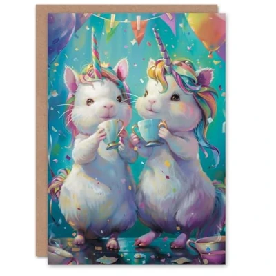 Artery8 Birthday Card Hamster Rainbow Unicorn Tea Party Cartoon Cute For Child Kids Son Daughter Greeting