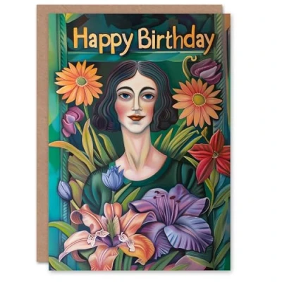 Artery8 Birthday Card Happy Florist Flower Shop Oil Painting For Her Gran Sister Niece Daughter Wife Woman Greeting