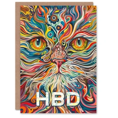 Artery8 Birthday Card HBD Rainbow Trippy Maine Coon Cat Painting Animal Lover For Him Her Man Woman Girl Boy Wife Husband Greeting