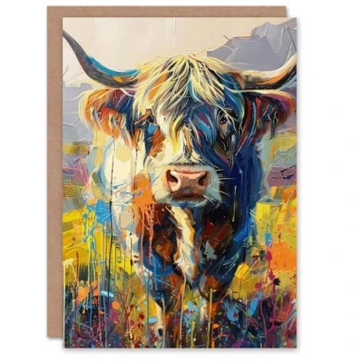Artery8 Birthday Card Highland Cow Scottish Oil Painting For Him Man Male Dad Brother Son Papa Grandad Greeting