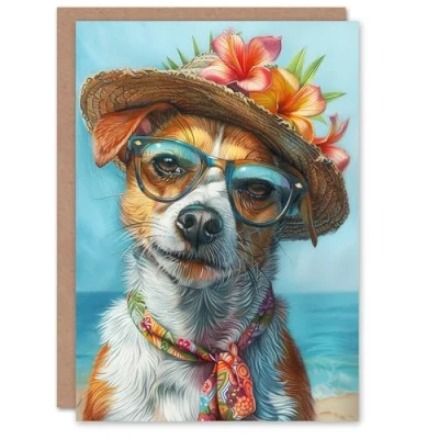 Artery8 Birthday Card Jack Russell Terrier Dog Lover Beach Holiday For Her Gran Sister Niece Daughter Wife Woman Greeting