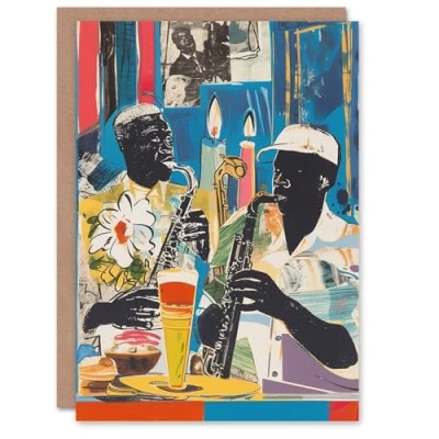 Artery8 Birthday Card Jazz Saxophone Musicians Abstract Painting For Him Man Male Dad Brother Son Papa Grandad Greeting