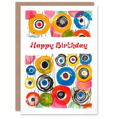 Artery8 Birthday Card Kandinsky Style Bright Colourful Abstract Circles Blank Arty Art All Occasion Greeting
