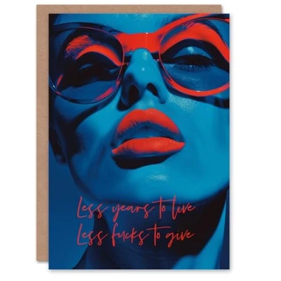 Artery8 Birthday Card Less F*cks To Give Red Lipstick Glasses Portrait For Her Gran Sister Niece Daughter Wife Woman Greeting