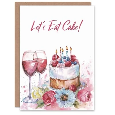 Artery8 Birthday Card Let's Eat Cake Fruit Wine Flowers Watercolour For Her Gran Sister Niece Daughter Wife Woman Greeting