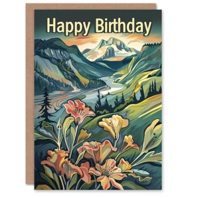 Artery8 Birthday Card Lily Flowers Scenic Mountain Landscape Sunrise For Her Gran Sister Niece Daughter Wife Woman Greeting