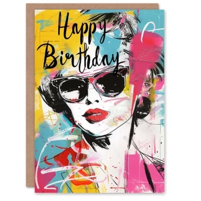Artery8 Birthday Card Lipstick Sunglasses Fashion Portrait For Her Gran Sister Niece Daughter Wife Woman Greeting