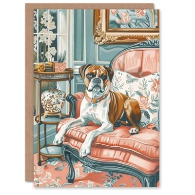 Artery8 Birthday Card Luxury Boxer Dog Lover Pink Teal Pet Portrait For Her Gran Sister Niece Daughter Wife Woman Greeting