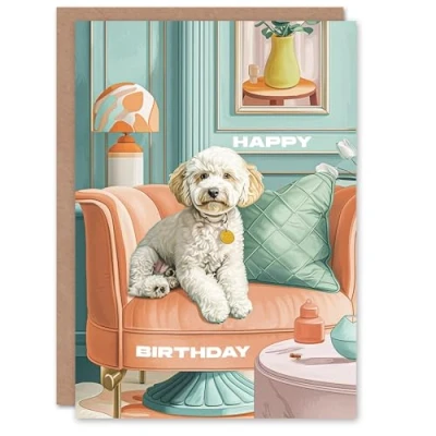 Artery8 Birthday Card Luxury Cockapoo Dog Lover Armchair Pet Portrait For Her Gran Sister Niece Daughter Wife Woman Greeting