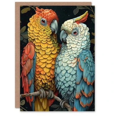 Artery8 Birthday Card Macaw and Cockatoo Parrot Birds Stylised Painting Blank Arty Art All Occasion Greeting