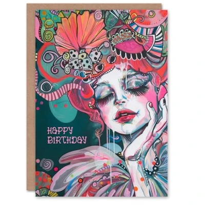 Artery8 Birthday Card Mad Hatter Fashion Woman Colourful Design For Her Gran Sister Niece Daughter Wife Greeting